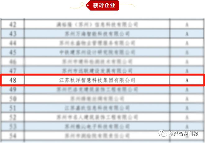 AG公司智慧科技荣获“江苏省质量信用品级A级企业”